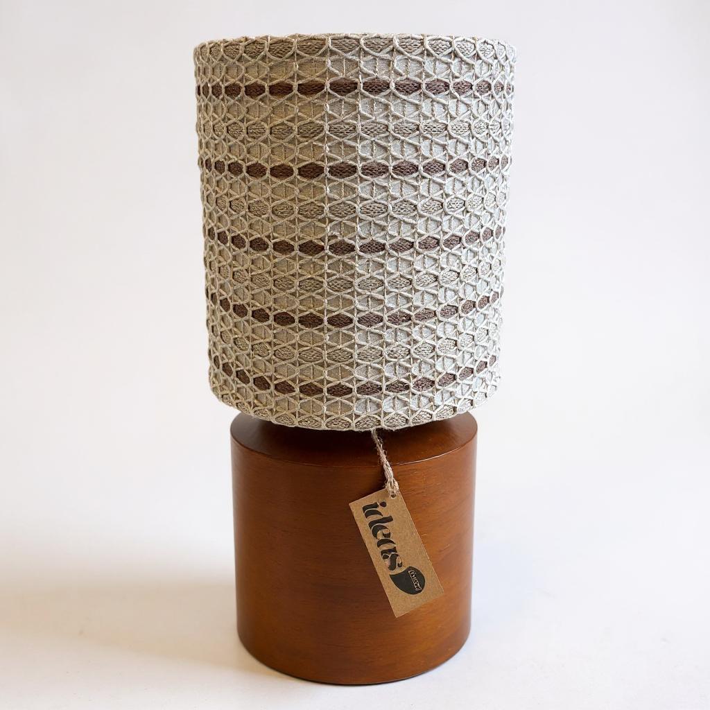 Este abajur é uma verdadeira obra de arte artesanal. Com cúpula totalmente confeccionada em crochê e base em madeira com lâminado natural, ele se destaca como uma peça única e autêntica, ideal para quem valoriza exclusividade nos detalhes.