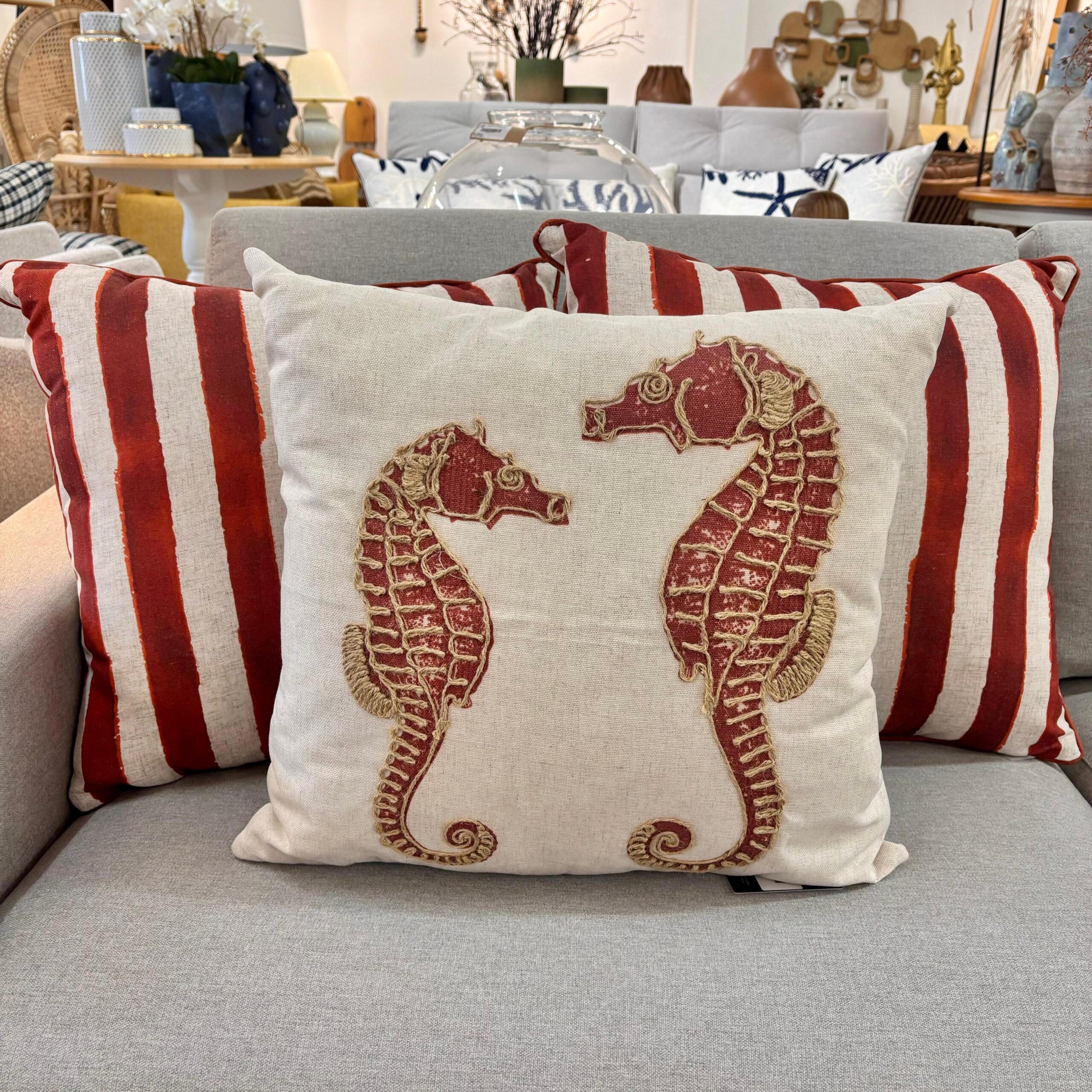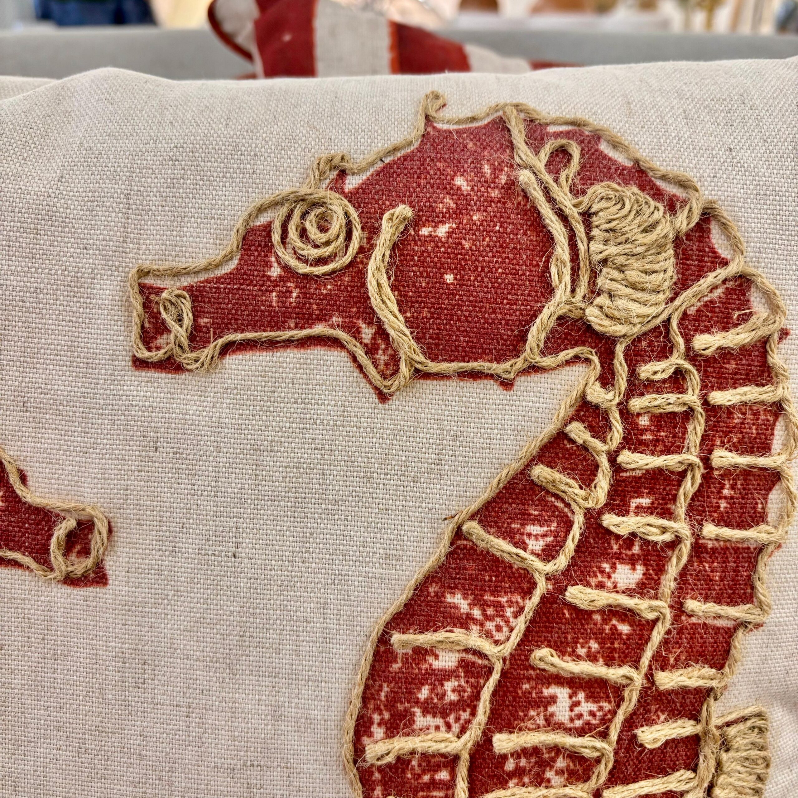 Almofada Sisal Cavalo-Marinho Vermelho 52×52 cm – Alto Padrão