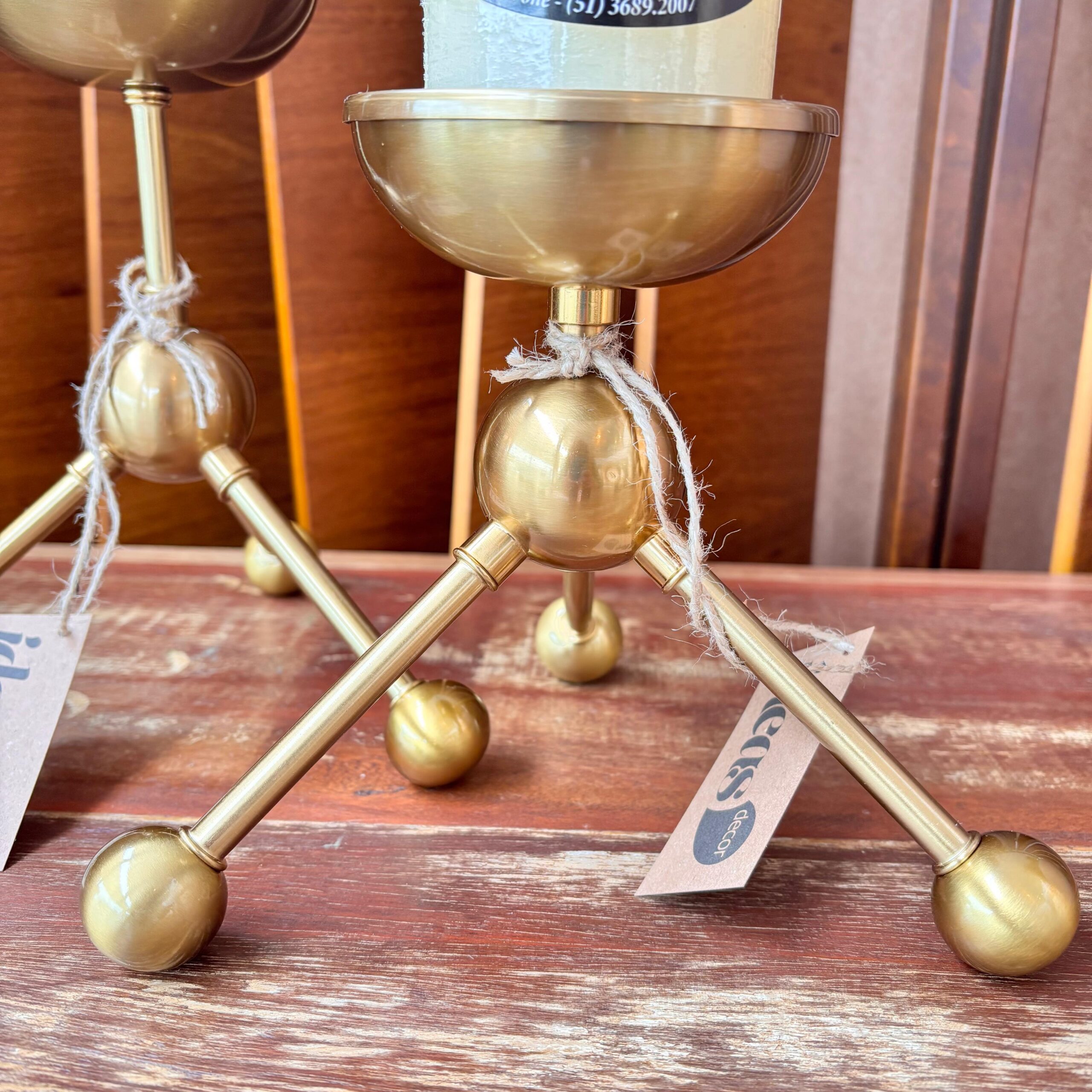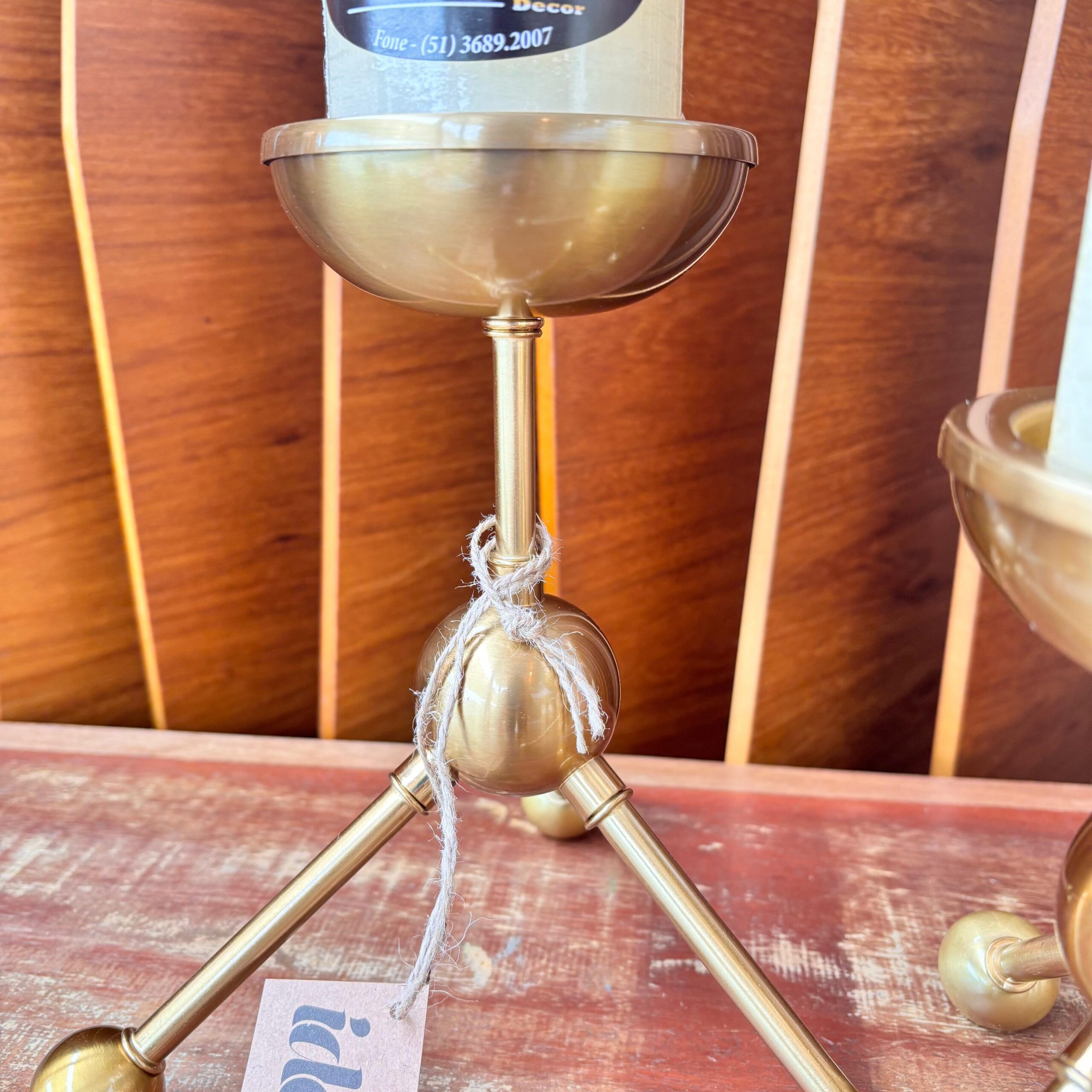Brilho elegante para compor mesas e aparadores. Em metal com fino acabamento dourado, este castiçal tamanho P é perfeito para mesa posta, jantares e composições sobre bandejas e livros — um toque clássico que combina com qualquer estilo.