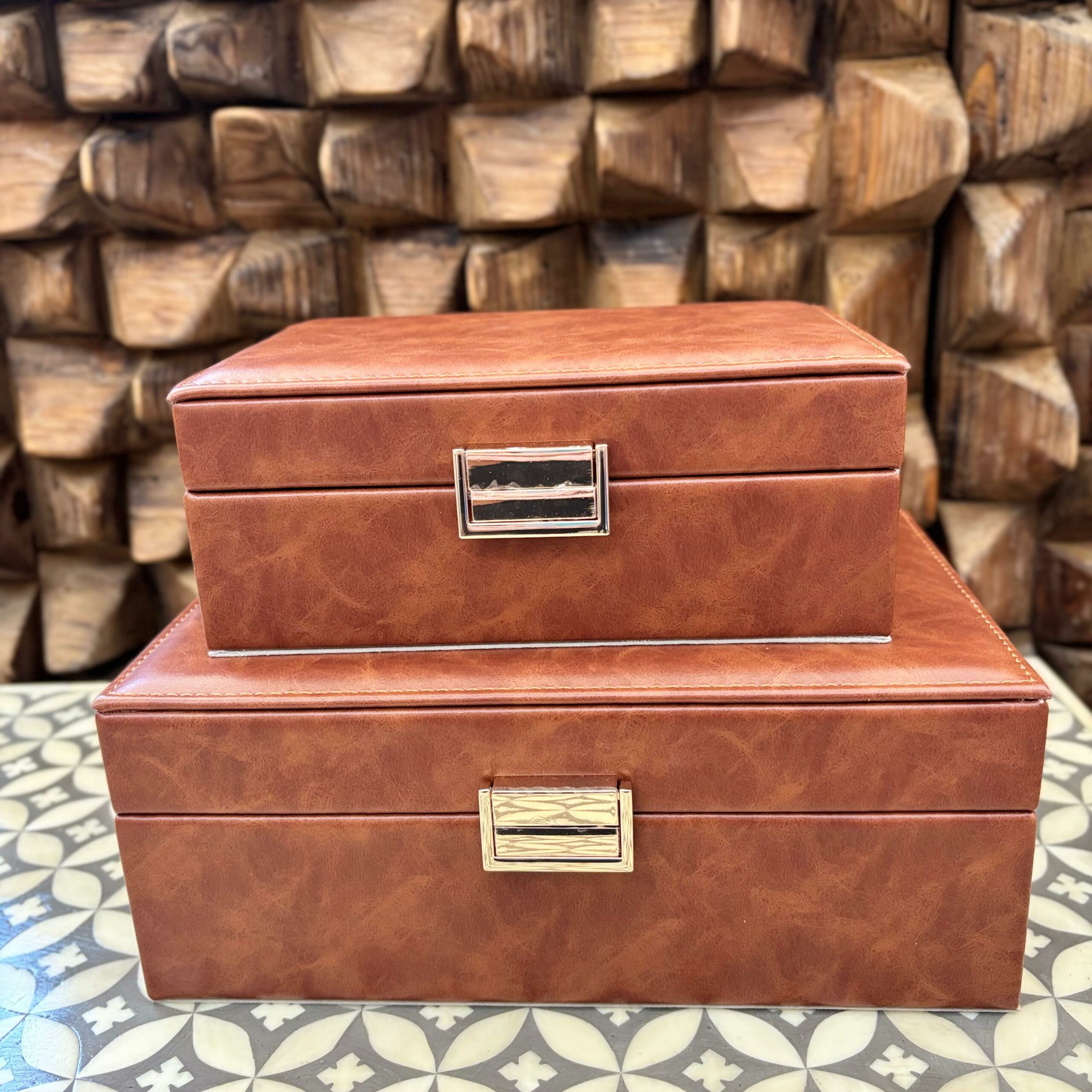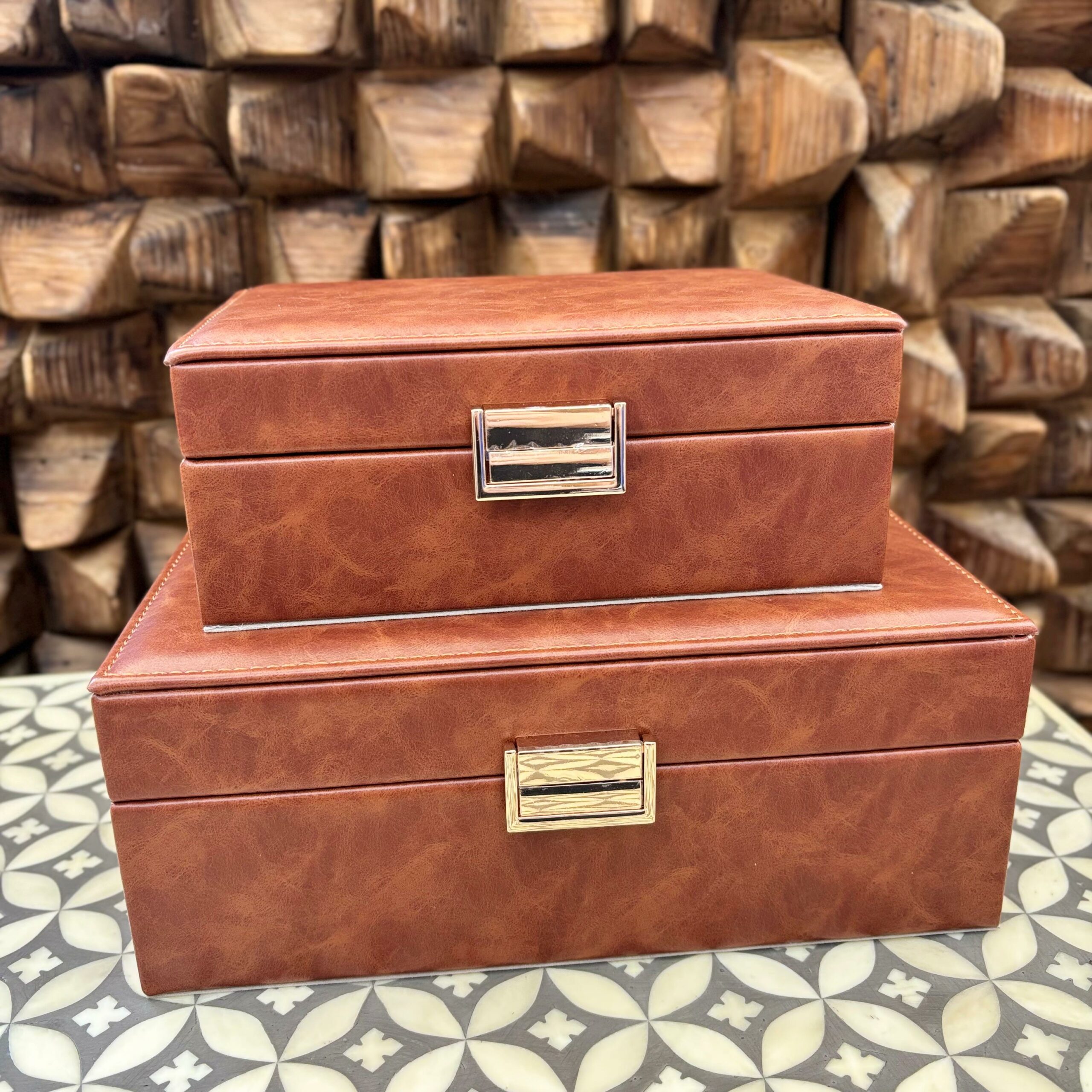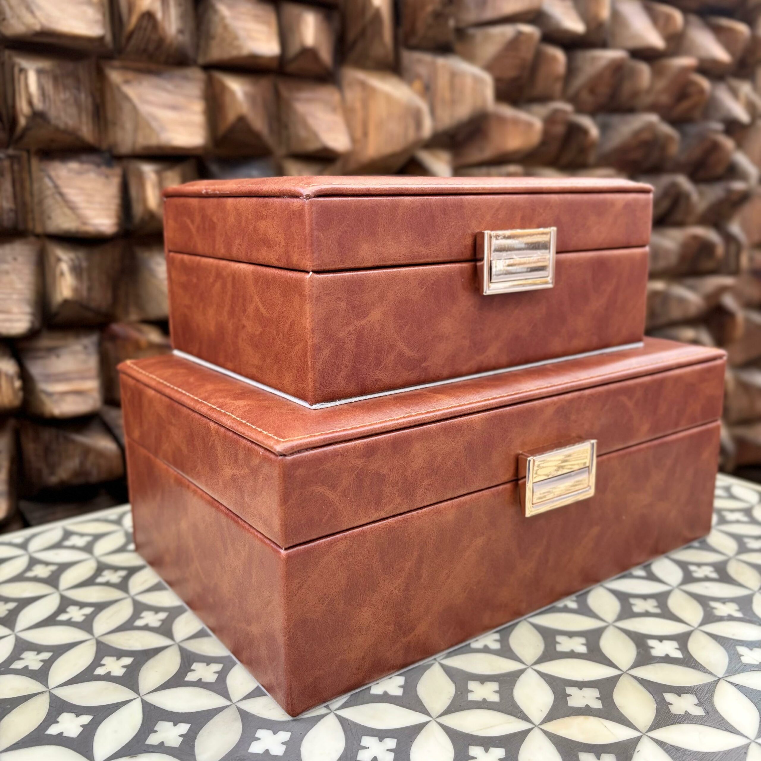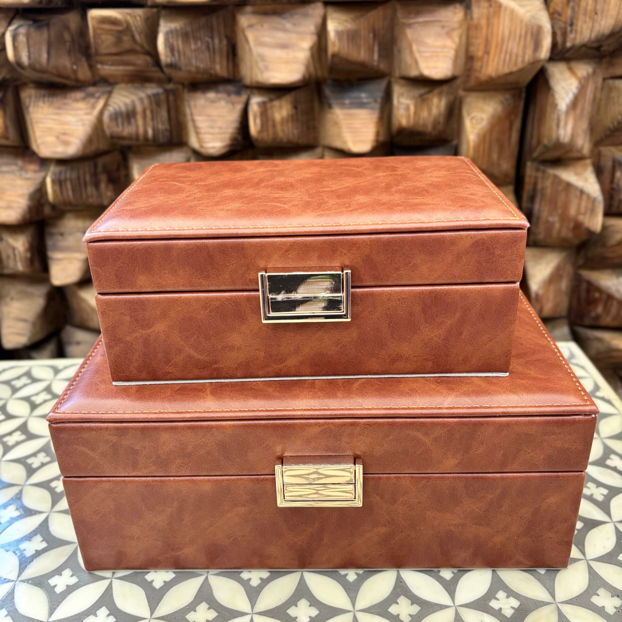 Conjunto com 2 Caixas Decorativa em Madeira e Courino