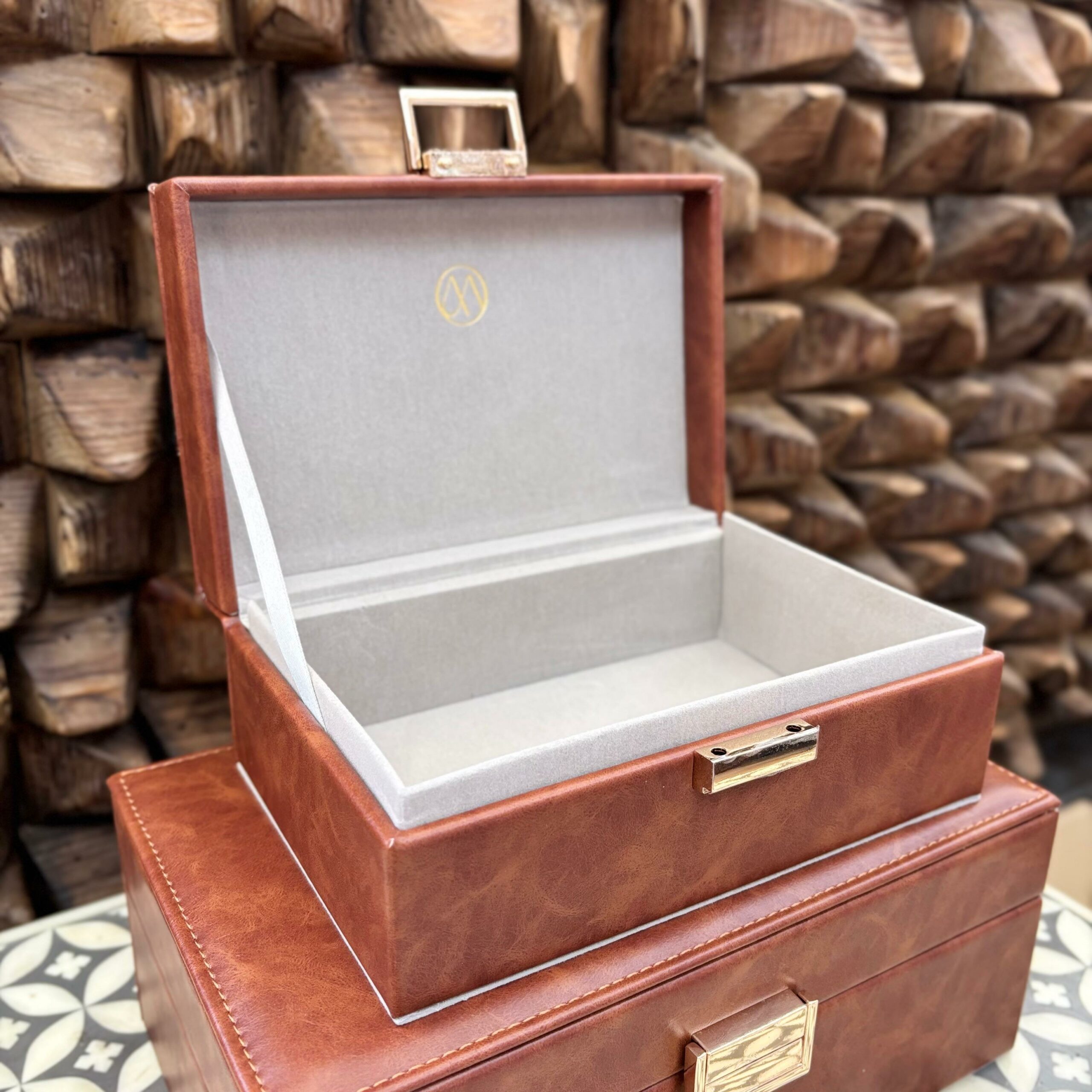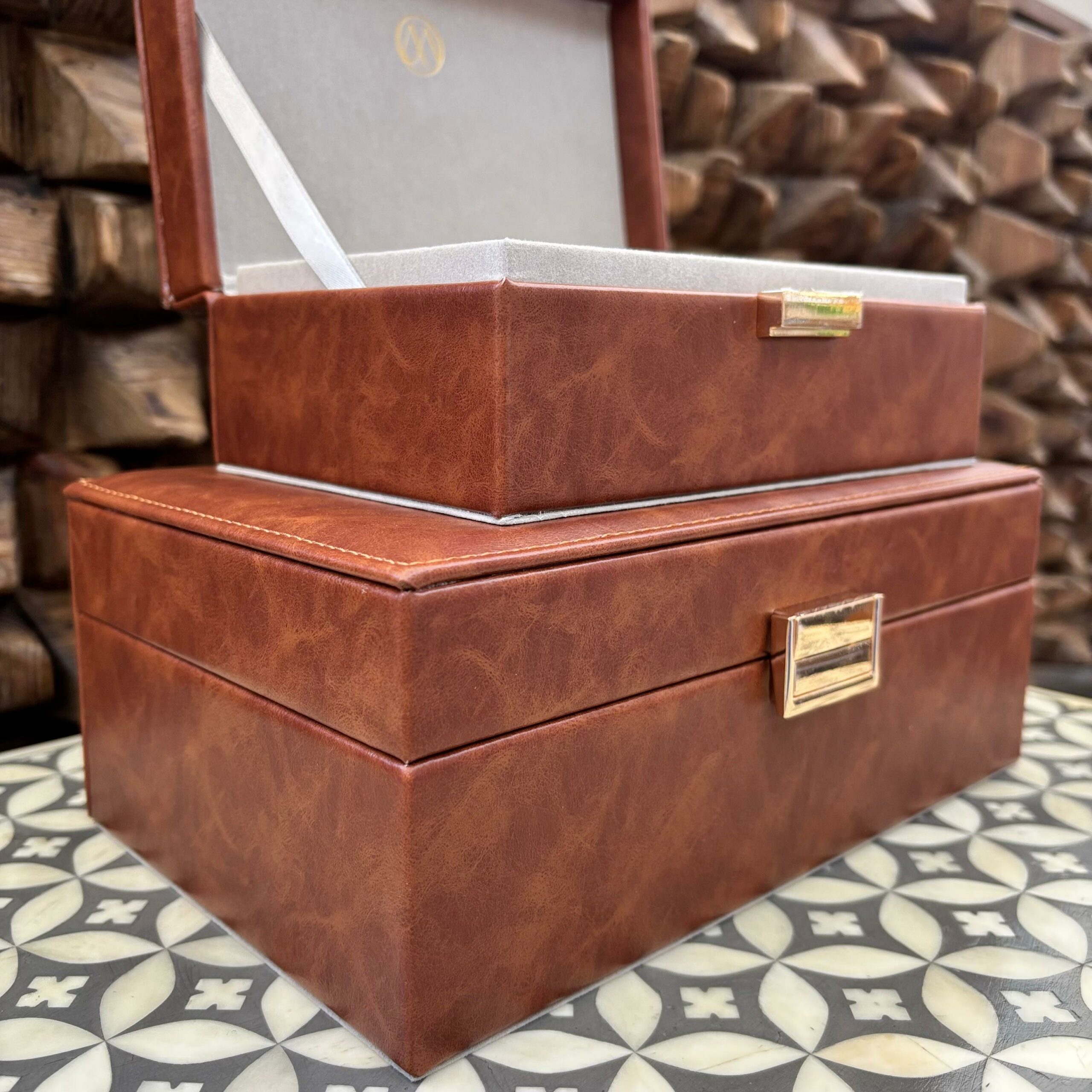 Combinando funcionalidade e elegância, este conjunto com 2 caixas decorativas é ideal para organizar e valorizar a decoração do seu ambiente. Produzidas em madeira com acabamento sofisticado em courino, são perfeitas para guardar pequenos objetos com estilo e praticidade.