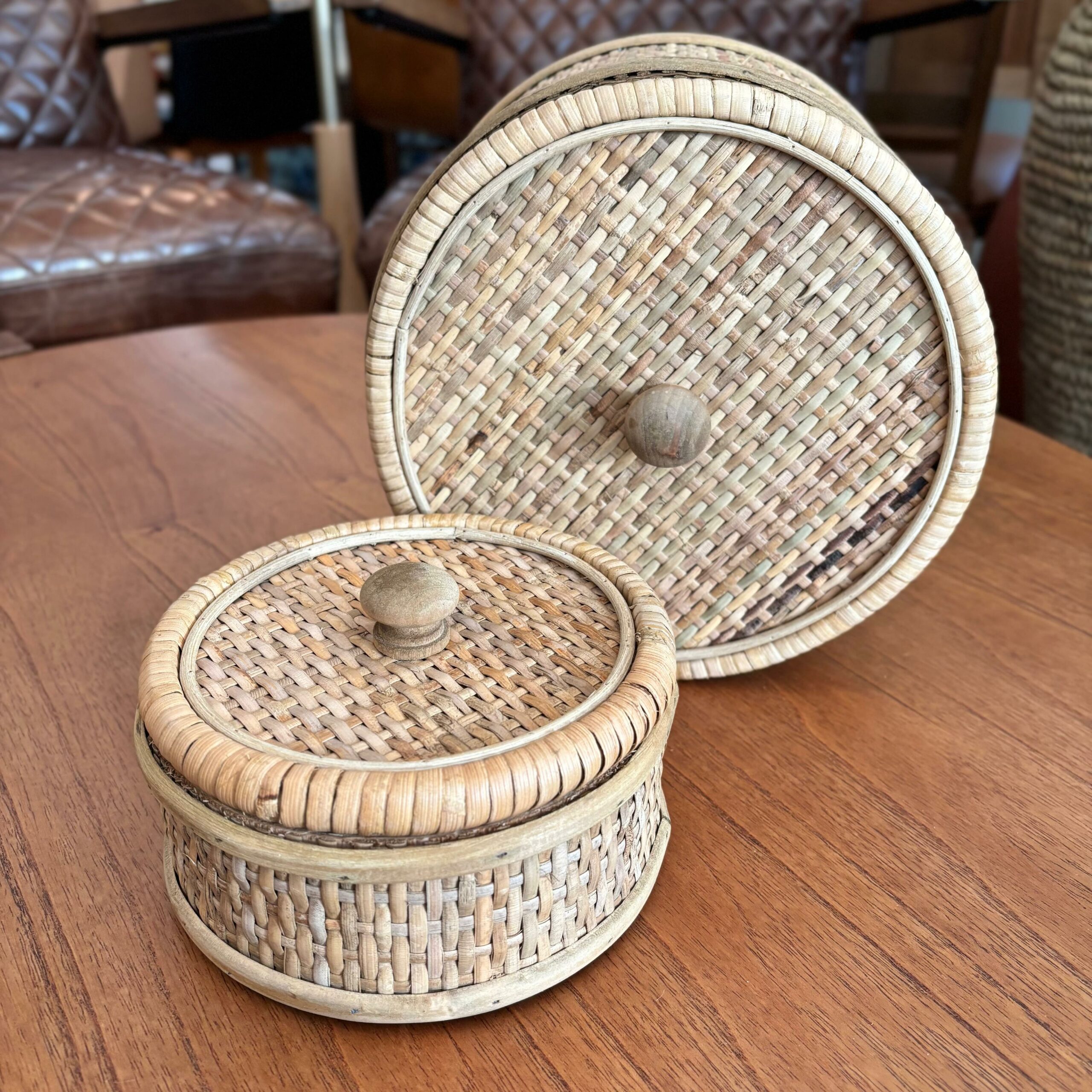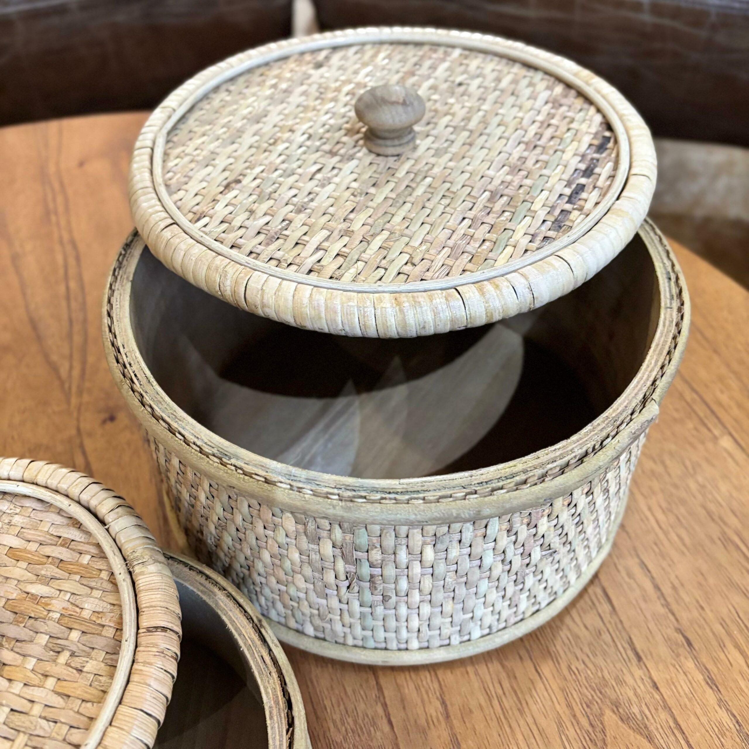 Este conjunto com duas caixas decorativas em rattan traz charme e funcionalidade para diferentes ambientes. Com acabamento natural e design elegante, as peças combinam perfeitamente com propostas de decoração contemporâneas, rústicas ou boho.