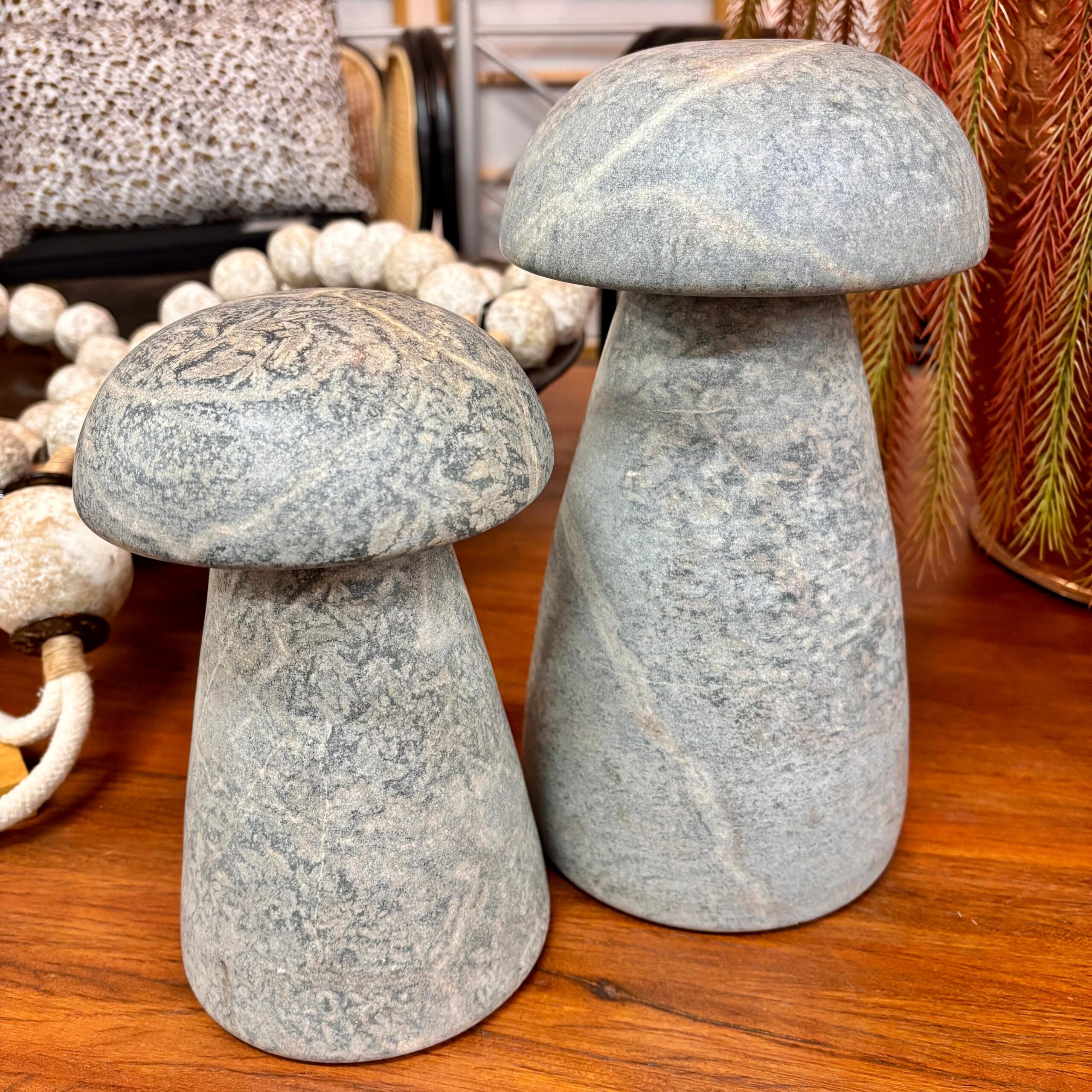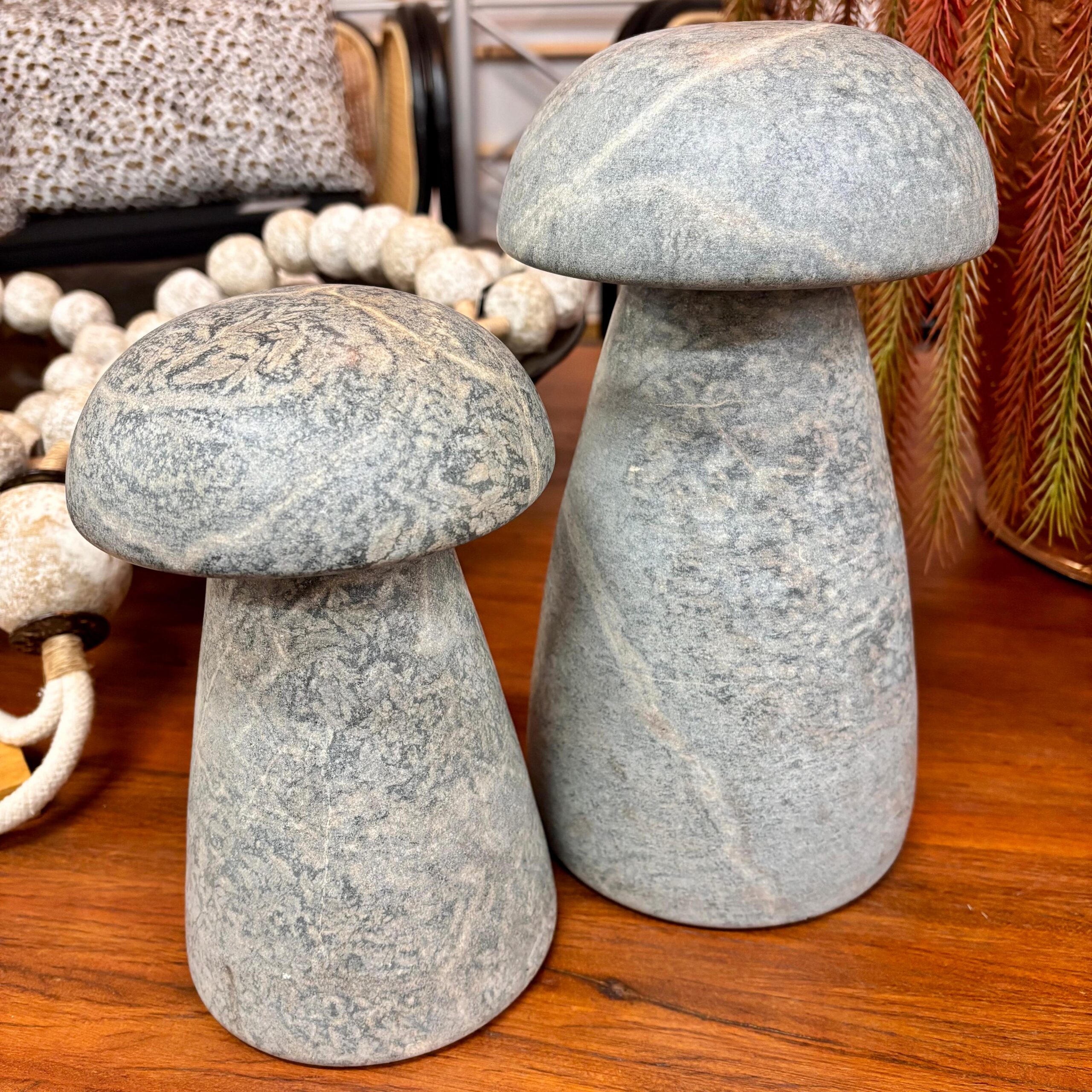 Protagonista minimalista para composições sofisticadas. Talhado em pedra-sabão de alta qualidade, o cogumelo G exibe design contemporâneo e veios naturais, funcionando como peça escultural em aparadores, mesas laterais, jardins e varandas. A alta durabilidade do material permite uso interno e externo.