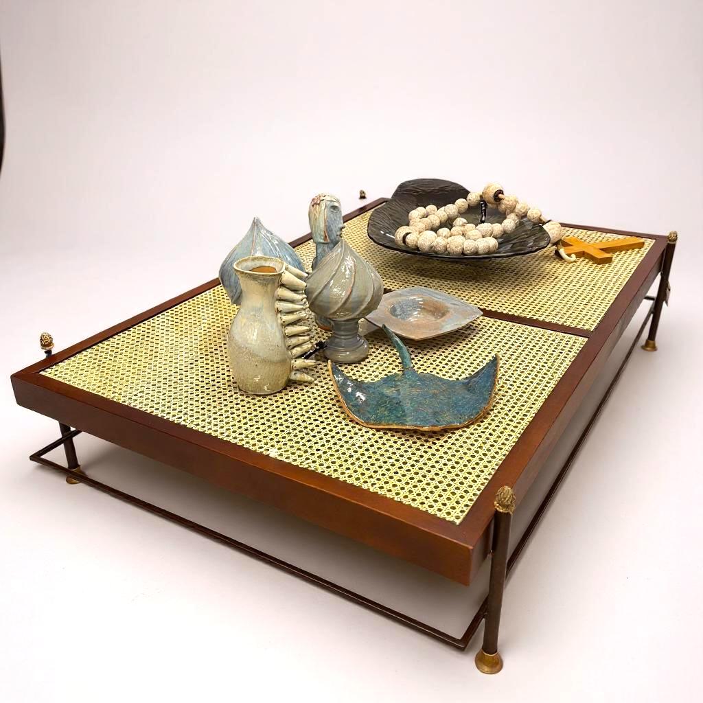 Mesa de Centro Palha Portuguesa e Madeira Maciça