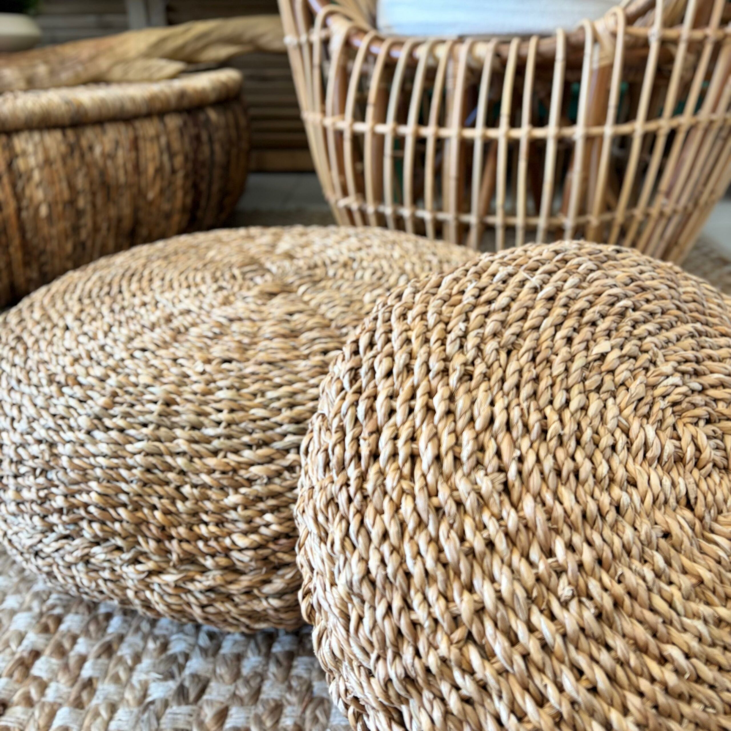Inspire-se na leveza e no charme do estilo boho com o Puff Bali em Fibra Natural. Feito artesanalmente, ele traz a essência do artesanato de Bali para a sua casa, combinando conforto e design natural.