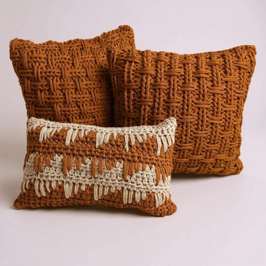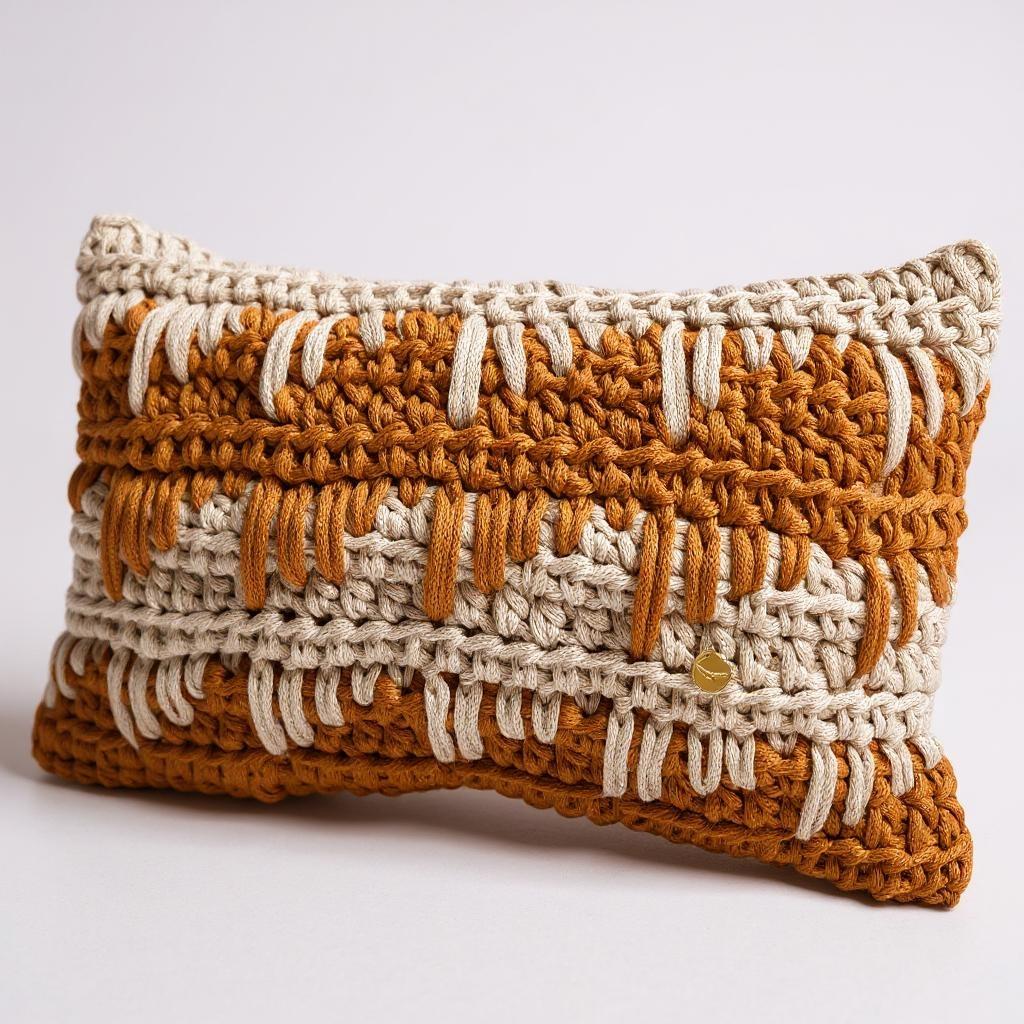 Almofada Artesanal em Crochê – Ponto Corda (30×50 cm) com Enchimento Conforto e textura que elevam qualquer ambiente. Feita 100% à mão em crochê ponto corda, esta peça combina marrom e marfim em um design versátil, perfeito para compor sofás, poltronas e camas com um toque acolhedor e sofisticado.