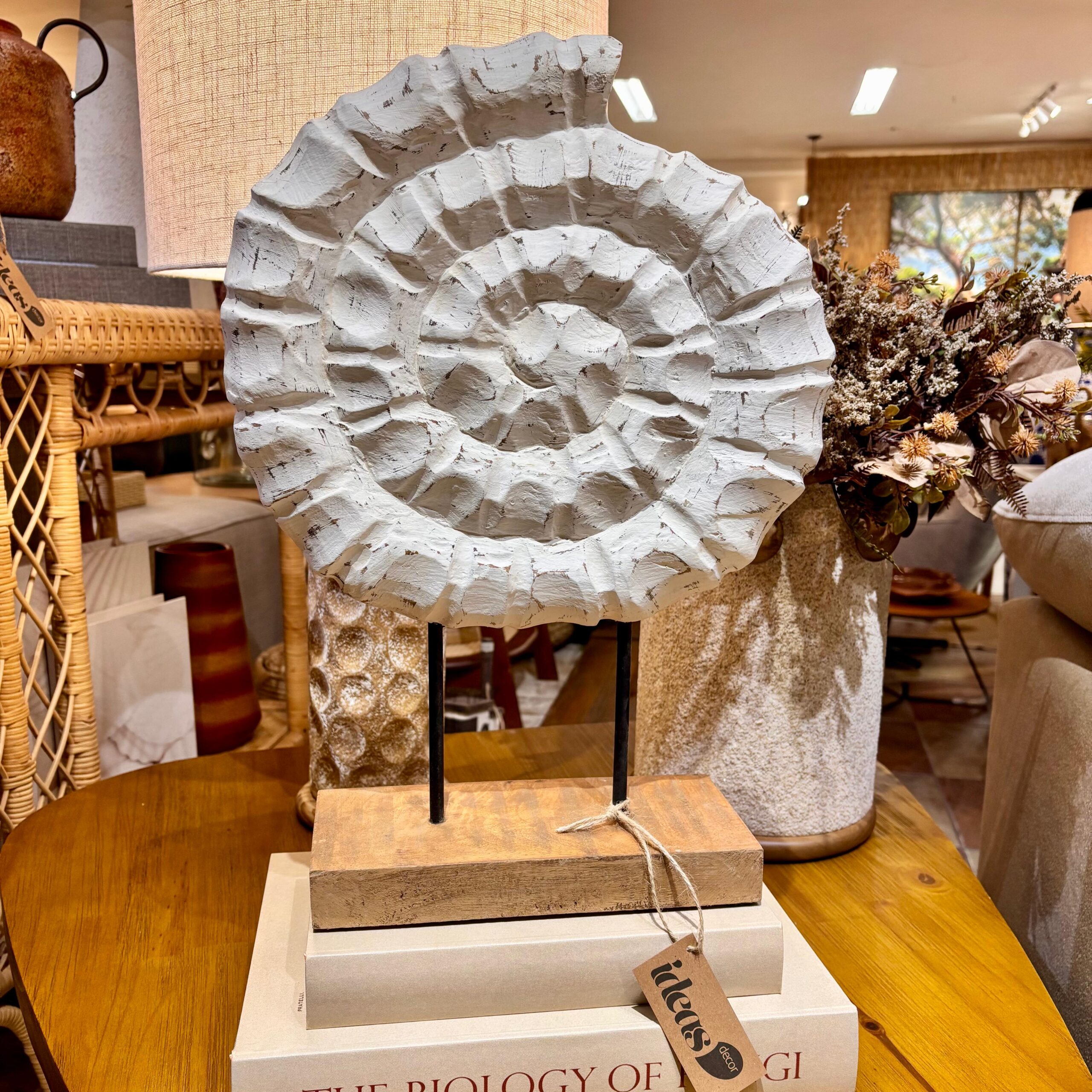 Protagonista coastal-chic para elevar o ambiente. Talhada à mão em madeira rústica, com corpo em resina e estrutura em ferro galvanizado, esta escultura de coral combina textura orgânica, leve brilho e presença elegante — perfeita para aparadores, mesas laterais e estantes.